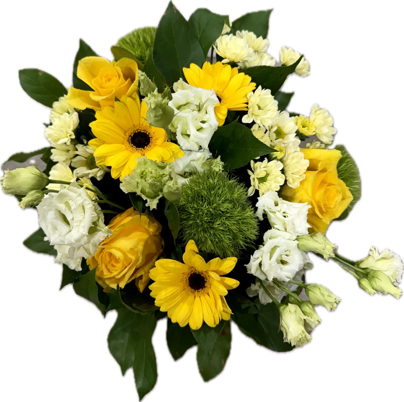 Haal pure zonneschijn in huis met Sunny Delight, een stralend boeket dat meteen een glimlach op je gezicht tovert. Gele rozen vormen het warme hart van dit arrangement en staan symbool voor vriendschap, geluk en positiviteit. Ze worden prachtig aangevuld met lichtgele santini en zonnige gele gerbera’s, die zorgen voor een speels en levendig karakter.